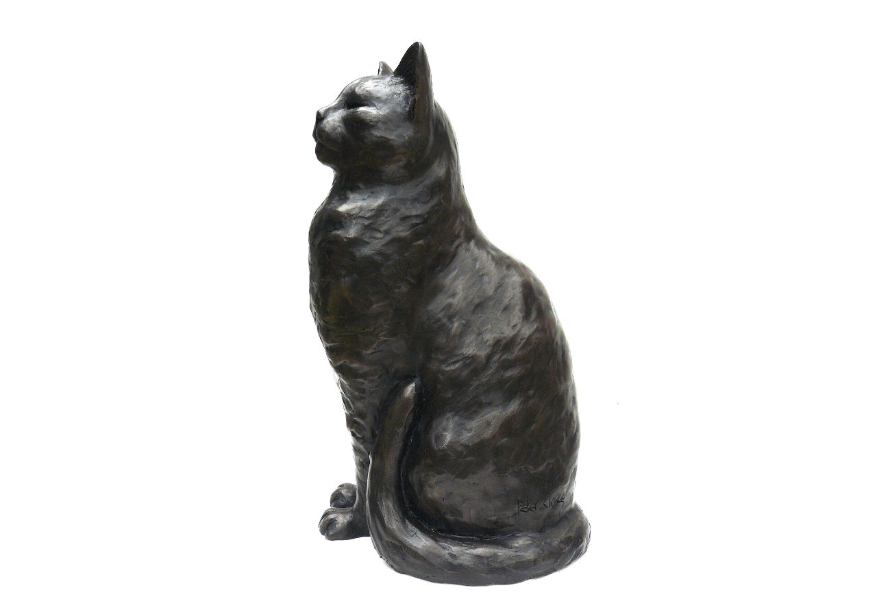 The sculptor has carefully detailed Percy’s fur, creating a realistic texture that contrasts beautifully with the smoothness of the bronze. The gentle curves of his body and the soft lines of his face convey a warmth and serenity that makes the sculpture feel alive. The rich patina of the bronze adds depth and dimension, with subtle variations in color that enhance the lifelike quality of the piece. This sculpture is not just a portrayal of a cat, but a celebration of the quiet joy and peace that cats like Percy bring into our lives. Perfect for cat lovers or those who appreciate the serene beauty of nature, this piece adds a touch of warmth and tranquility to any space.
