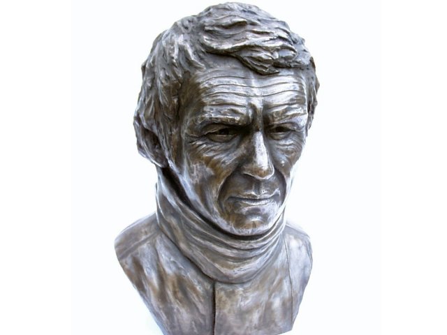 The bronze busts shows McQueen with his character’s intense and focused expression, reflecting the determination and concentration required of a racing driver. His piercing eyes are rendered with depth and realism, capturing his signature gaze that conveyed both cool confidence and a hint of vulnerability.